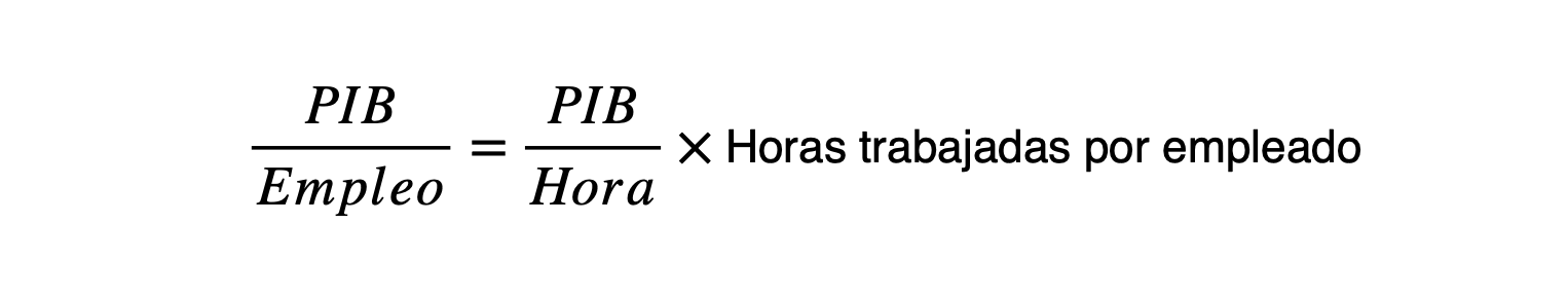 A partir de 1987, cuando la PWT reporta horas trabajadas, la productividad por trabajador puede refinarse como: