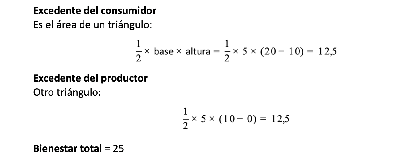 La suma de ambos es el bienestar económico total del mercado. Ese es el “pastel” que la economía busca agrandar antes de discutir cómo repartirlo.